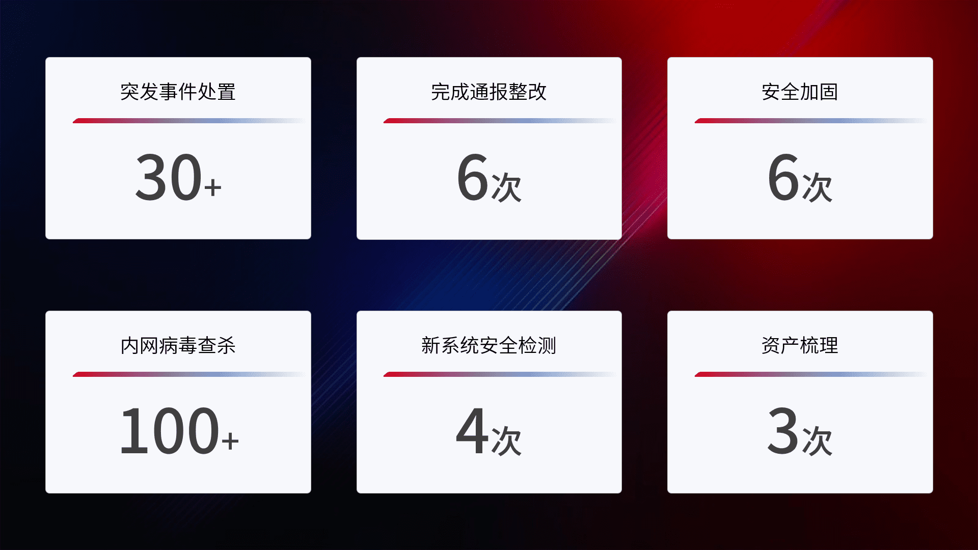 安全水平提升与事件响应:派驻经验丰富的安全工程师,,,,提升医院网络安全防护的整体水平;建立突发网络安全事件的处置流程,,提高响应速度和处置能力。。。。